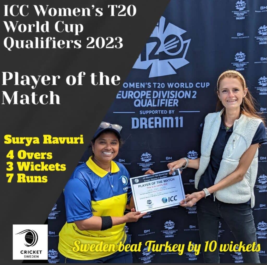 Sweden Women’s cricket team achieved a comprehensive 10-wicket victory against Turkey. Turkey’s batting collapsed and they could only manage 51 runs for the loss of eight wickets in their allotted 20 overs. Sweden’s opening pair chased down the target in just seven overs without losing a wicket, achieving a run-rate of 7.42. This win will boost Sweden’s confidence and morale for their upcoming cricket matches.